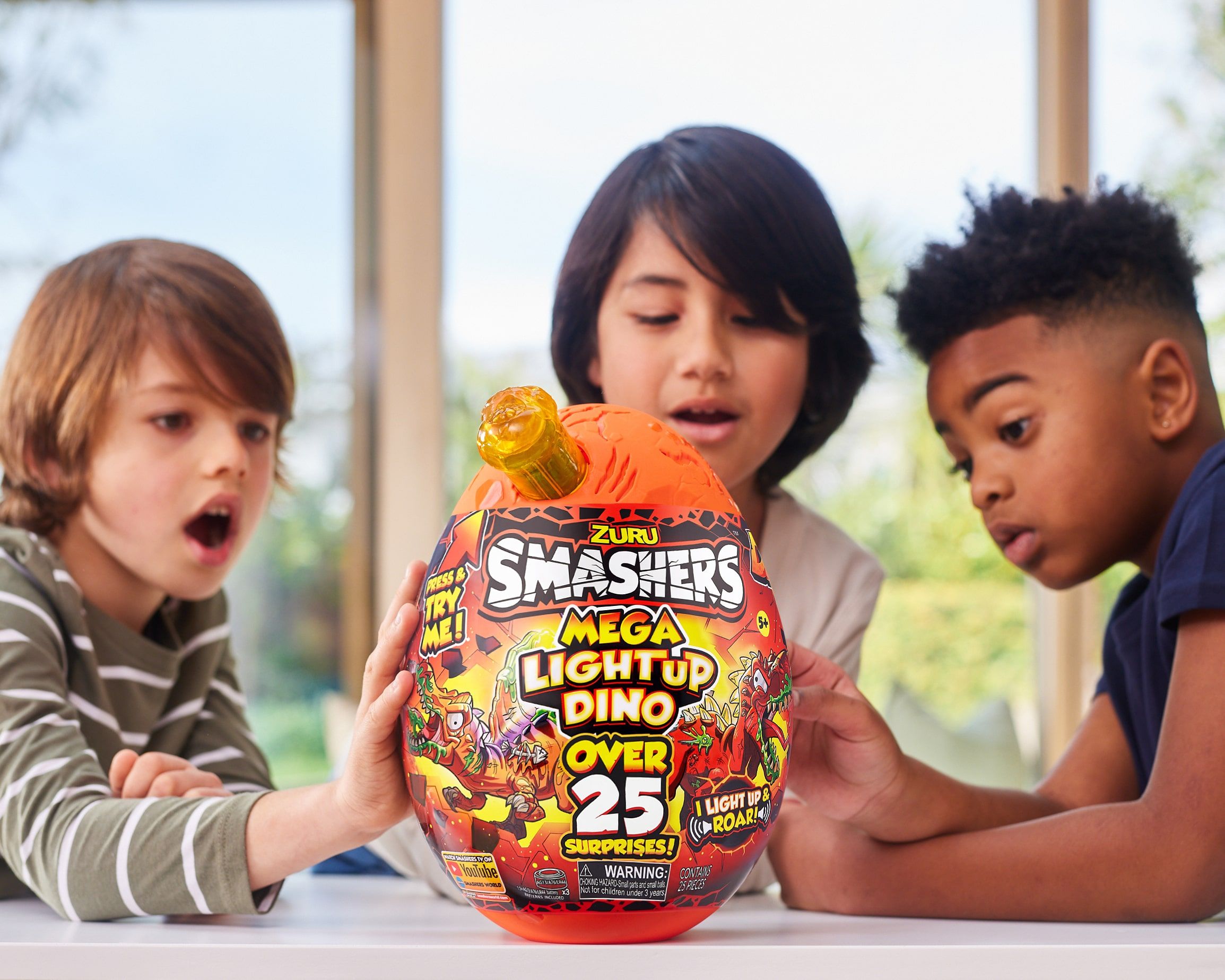 Get ready to smash, dig and slime your way through over 10 roar-some Smashers surprises. Smash the Jurassic Light Up Egg and dig through meteorites and slime to discover your dinosaur pieces. Build your Smash-o-saur to watch it light up in Jurassic action! There are three dinosaurs to smash and collect.. Smash, build and battle with Smashers!